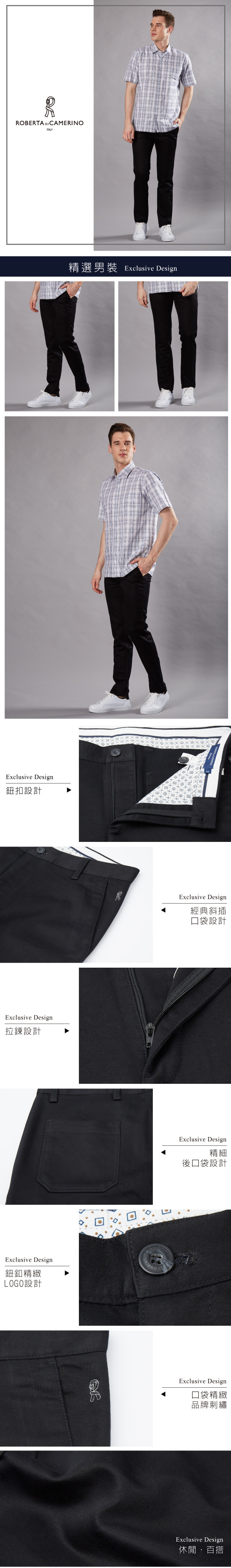 時尚合身彈性休閒褲-黑色