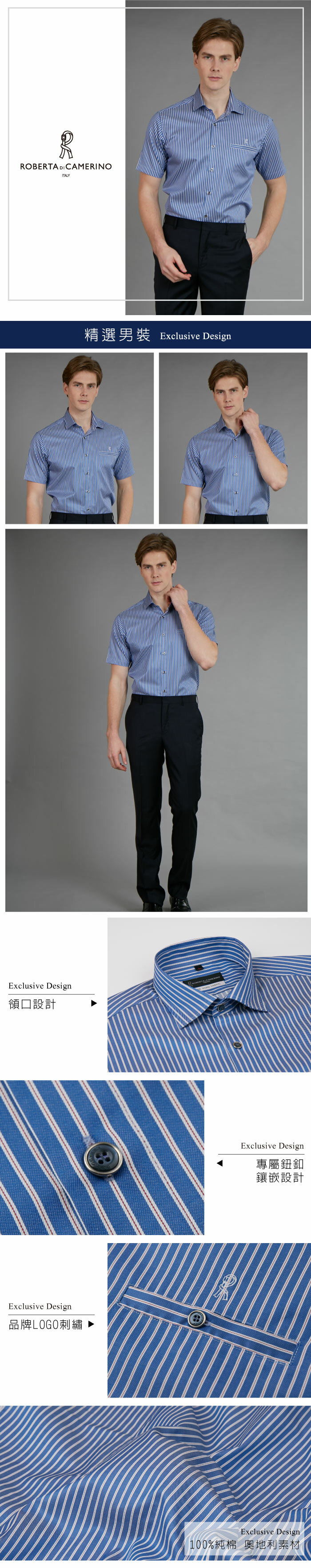 夏日型男 魅力休閒藍色條紋短袖襯衫(奧地利素材/修身版)