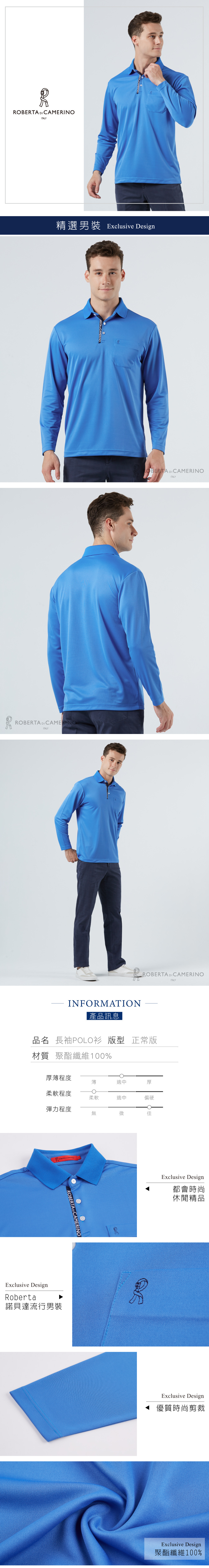 男裝 乾爽 舒適機能布 藍色長袖棉衫