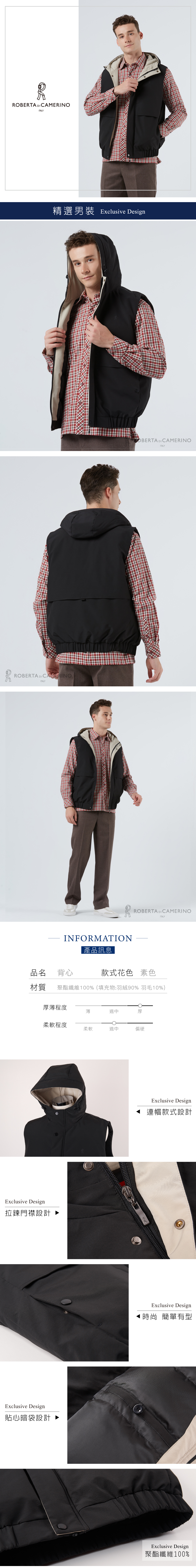 男裝 舒適保暖 黑色羽絨背心