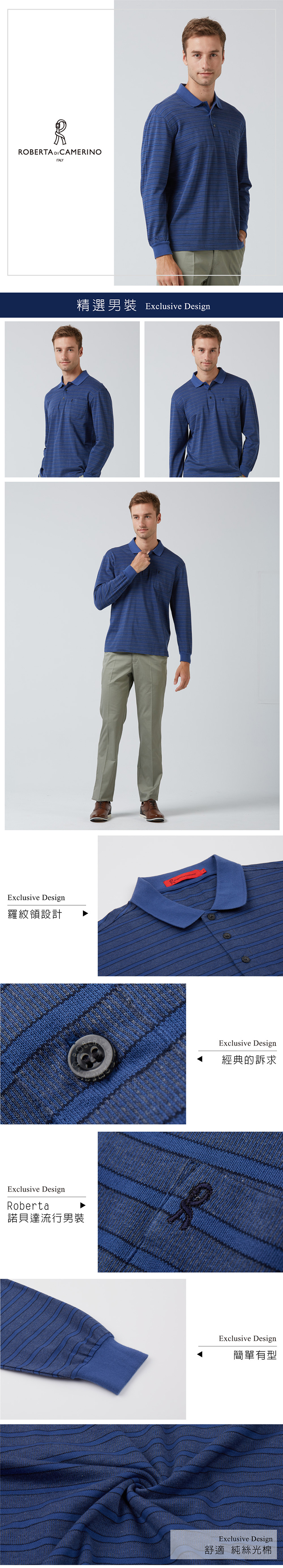 精品流行品味長袖POLO衫 RBI63-39藍