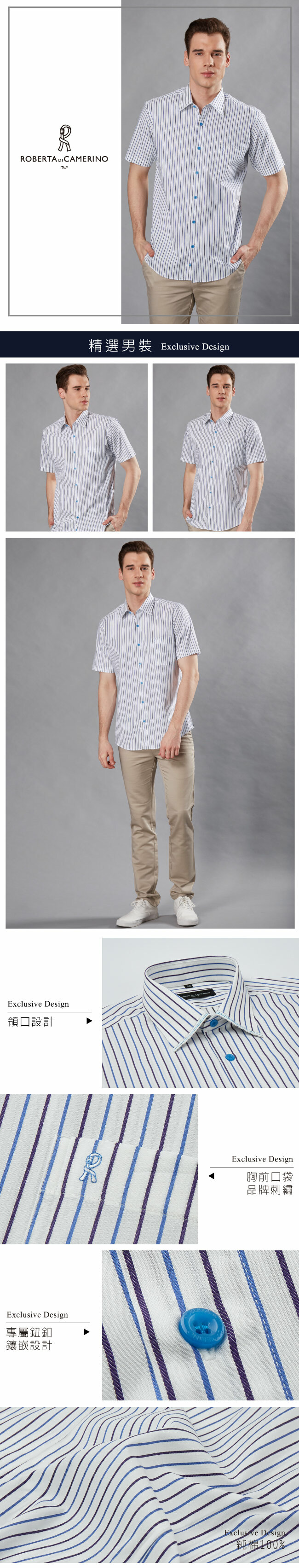 合身版 休閒 純棉緹花條紋短袖襯衫-藍(REF03-33)