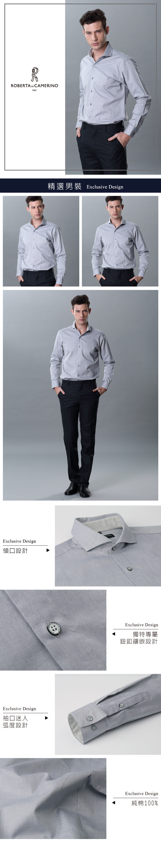 合身版 休閒朝氣 純棉長袖襯衫RFG60-96灰色