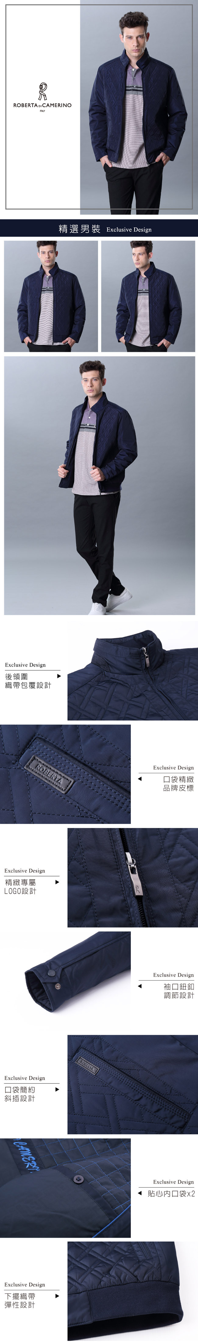 簡約菱格 內裡鋪棉夾克外套ROF70-39藍色